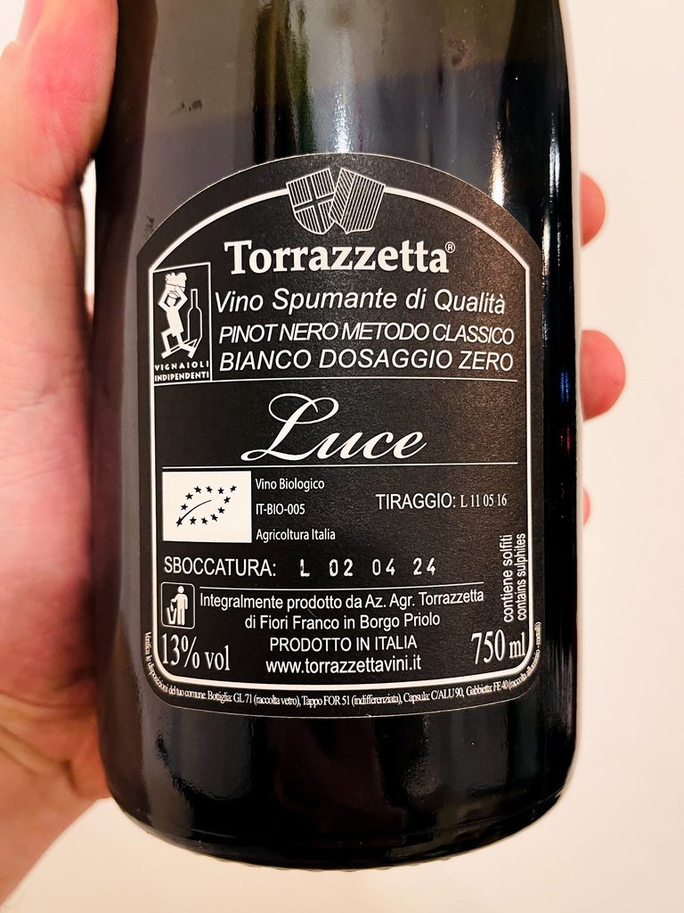 Luce – Torrazzetta è un Vino Spumante di Qualità Pinot Nero Metodo Classico Bianco Non Dosato che fa un minimo di 54 mesi di affinamento sui lieviti, (spesso si arriva a più di 90 mesi) con almeno un nuovo accatastamento e minimo 9 mesi in bottiglia dopo la sboccatura.